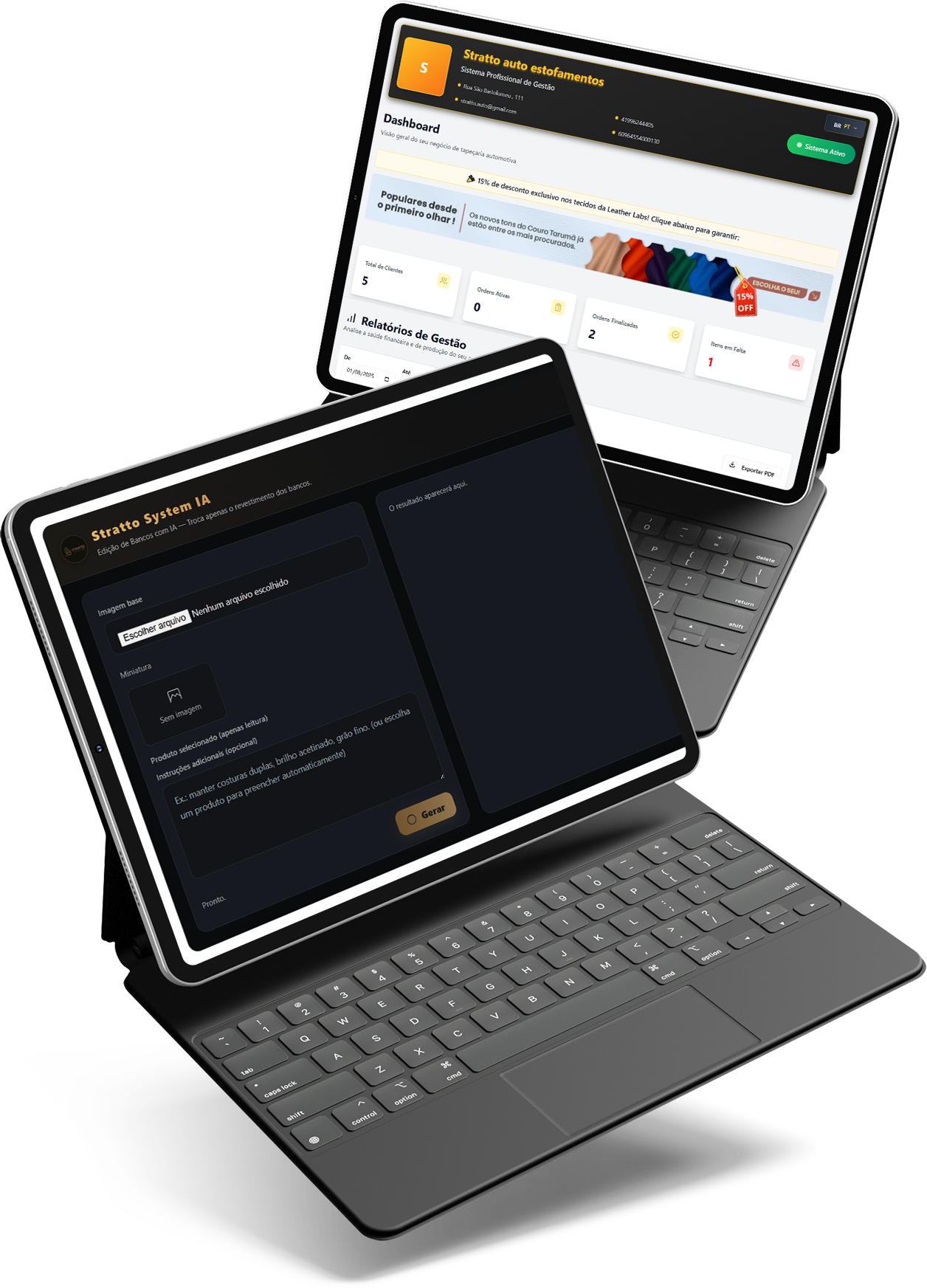 Mais do que um software, o Stratto é um parceiro estratégico para o crescimento do seu negócio, unindo gestão completa, relatórios precisos e o grande diferencial, a Stratto IA, que permite apresentar ao cliente uma prévia realista do carro antes mesmo do serviço começar.
